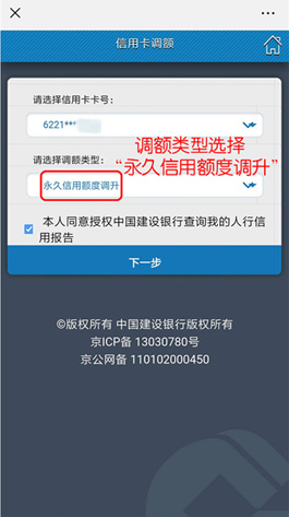 特别提示:通过此方式调升永久额度前,应先将信用卡账户绑定至“中国建设银行”微信号。微信号内回复关键词“绑定”即可操作绑定。