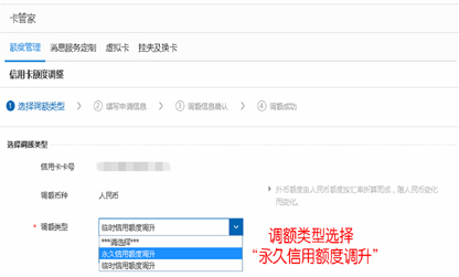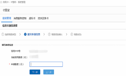 ◆ 自助渠道调额申请不支持学生卡、公务卡、益贷卡及商务卡等。
