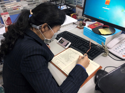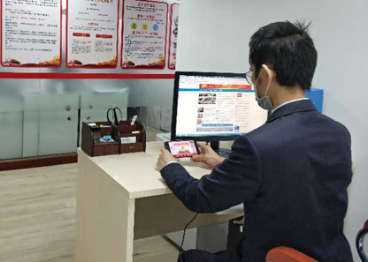 广东省湛江分行人力资源部本部党总支专职副书记邓娟萍通过建行大学网络学习平台观看基层党务工作者直播培训课程。