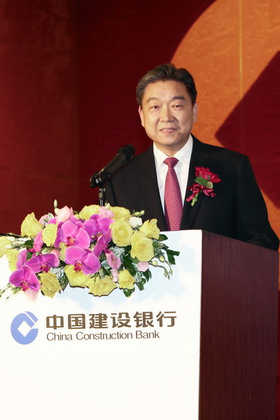 中国建设银行行长张建国在澳门分行成立庆祝酒会上致辞。