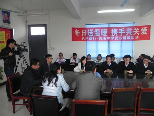 冬日的暖阳包裹着大地,虽有不时的寒风袭来,却依然在万物间映射出温暖的光辉。长兴支行希望这些生活、学习用品能帮助到同学们,让他们在温暖的环境中健康成长,将来他们将会用一颗真挚的心回报社会。虽然天气很冷,但夹浦中学的校园里却“春意盎然”,因为这里有浓浓的“爱心”涌动。我们将会让长兴建行的温暖继续传递下去……