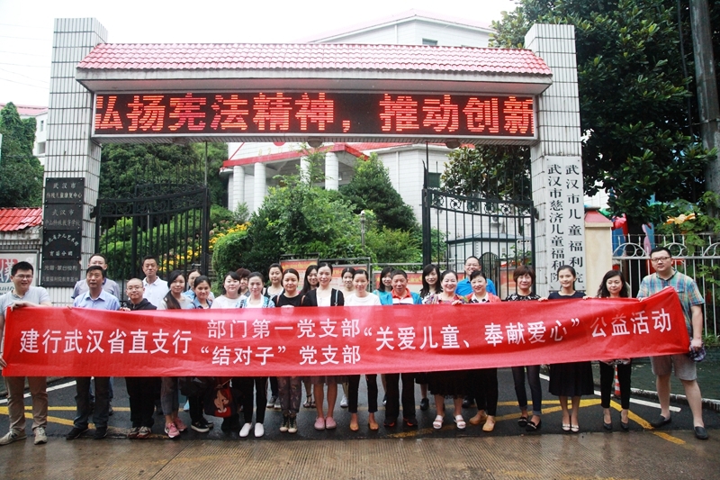 为深入践行“两学一做”学习教育精神,在实践中争做合格党员,6月25日上午,湖北武汉省直支行部分党支部到武汉儿童福利院开展“关爱儿童、奉献爱心”公益活动。