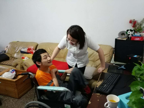 看到孩子的一霎那,我惊住了。坐在轮椅上的他和我的女儿年龄相仿,可个子矮小,更不用提智力了。更让我揪心的是他的眼神,迷惘中透着绝望。原本风华正茂的年龄,却因为脑瘫这个疾病而深陷不幸,一瞬间,我心中的母性被唤醒了。慢慢地,我得知,孩子尽管只上过一年小学,却坚持上网自学写作。
