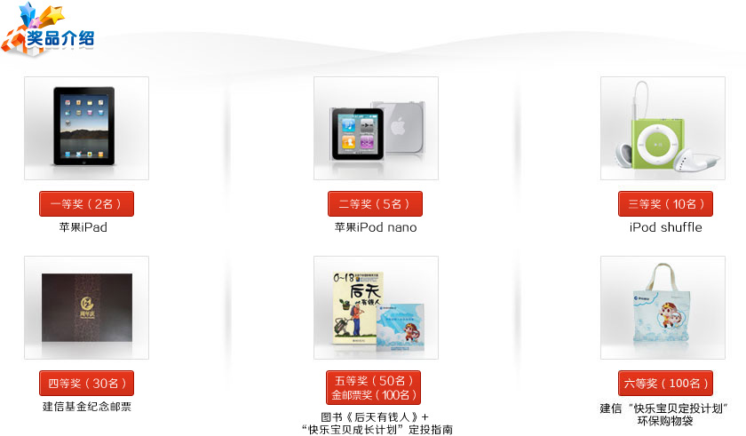 美丽的初夏之际我们迎来了快乐的六•一国际儿童节。图书、玩具?这次我们都不送,我们要送给宝贝美好的未来。基金定投已被广泛地认为是家长筹集宝贝成长、教育乃至出国留学经费的理想选择。至此,建信基金推出了"快乐宝贝定投计划"及"快乐宝贝定投、累积爱的财富"炫动集邮活动,诚邀您关注及参与,更期待您能赢得幸运大奖。 我要参与>>