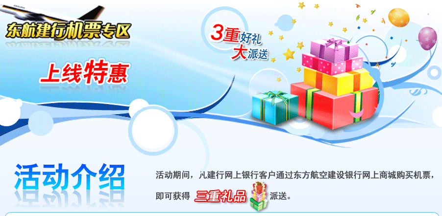 用户在东方航空建设银行网上商城注册为会员即可获得"建行-东航机票专区"2000会员积分奖励。 |