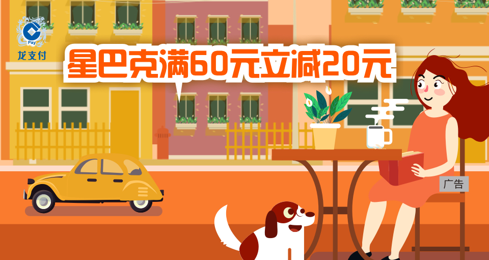 活动指定日,客户在全国指定星巴克门店使用中国建设银行APP的龙支付二维码付款(限建行钱包、或绑定的卡号62开头的建行卡),可享单笔满60元立减20元优惠(单笔封顶减20元,优惠部分金额不予开具发票);每活动日每客户限享1次优惠,每周限2次优惠。