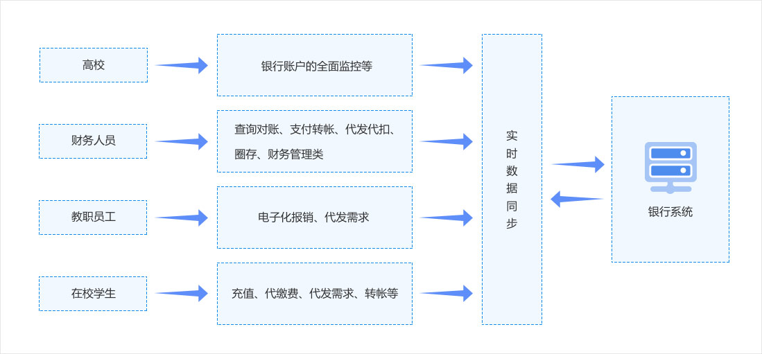 随着教育行业的不断规范化,高校对于财务管理信息化、自动化的需求越来越迫切,财务人员、教职员工、在校学生客户资源庞大、服务场景丰富、资源优化价值不断放大。
