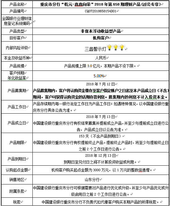 2018年第658期理财产品说明书