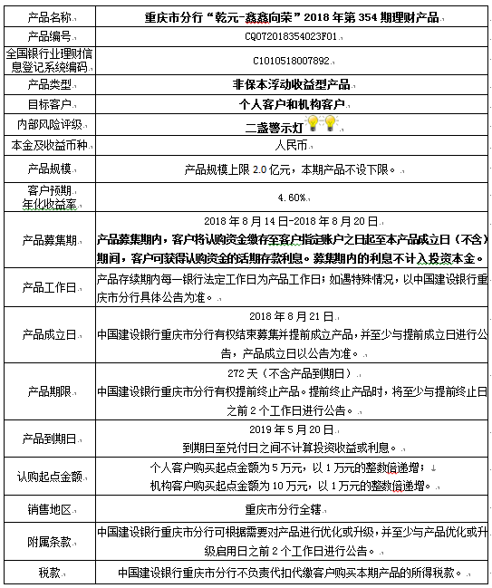 3.中国建设银行重庆市分行可根据市场情况等调整产品规模上、下限,并最迟于调整规模上下限当日进行公告。