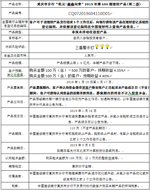 3.中国建设银行重庆市分行可根据市场情况等调整产品规模上、下限,并最迟于调整规模上下限当日进行公告。