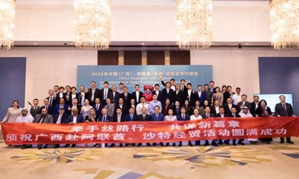 2023年3月2日,由广西壮族自治区商务厅和迪拜商会主办、中国建设银行迪拜国际金融中心分行等协办的2023年中国(广西)-阿联酋(迪拜)经贸合作对接会在迪拜成功举行。来自广西的40家企业与近50家阿联酋企业积极对接交流,助推中阿经贸合作更上一个新台阶。