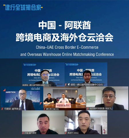 On July 26, 2022, China Construction Bank (DIFC Branch) together with China Construction Bank Zhejiang Branch, Dubai Chamber of Commerce and China National Building Material Group FZE (CNBM), cohosted the E-commerce and Overseas Warehouse Online Matchmaking Conference which was a great success with more than 350 online attendees.