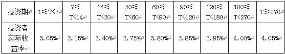 根据产品说明书的约定, 2017年12月01日至2017年12月05日投资者实际收益率如下表所示: