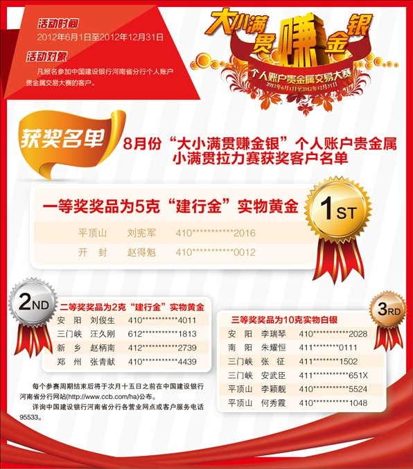 8月份“大小满贯赚金银”个人账户贵金属小满贯拉力赛获奖客户名单