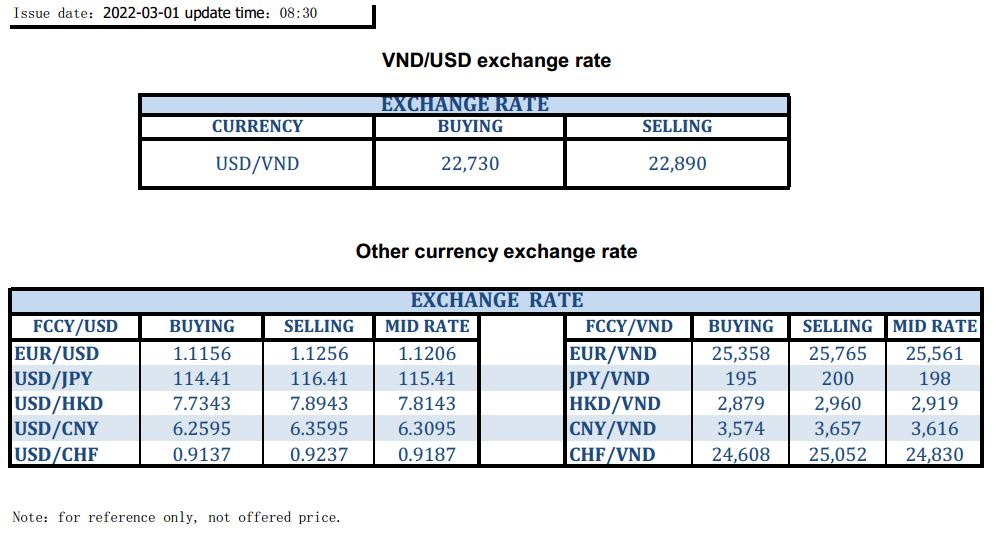 EXCHANGE RATE UPDATE 2022-03-01