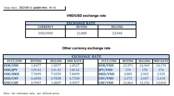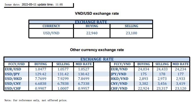 EXCHANGE RATE UPDATE 2022-05-11