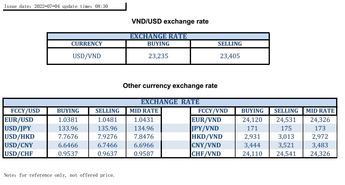 EXCHANGE RATE UPDATE 2022-07-04