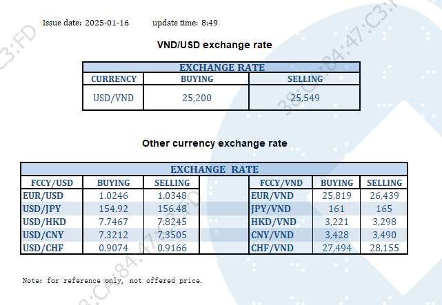 EXCHANGE RATE UPDATE 2025-01-16