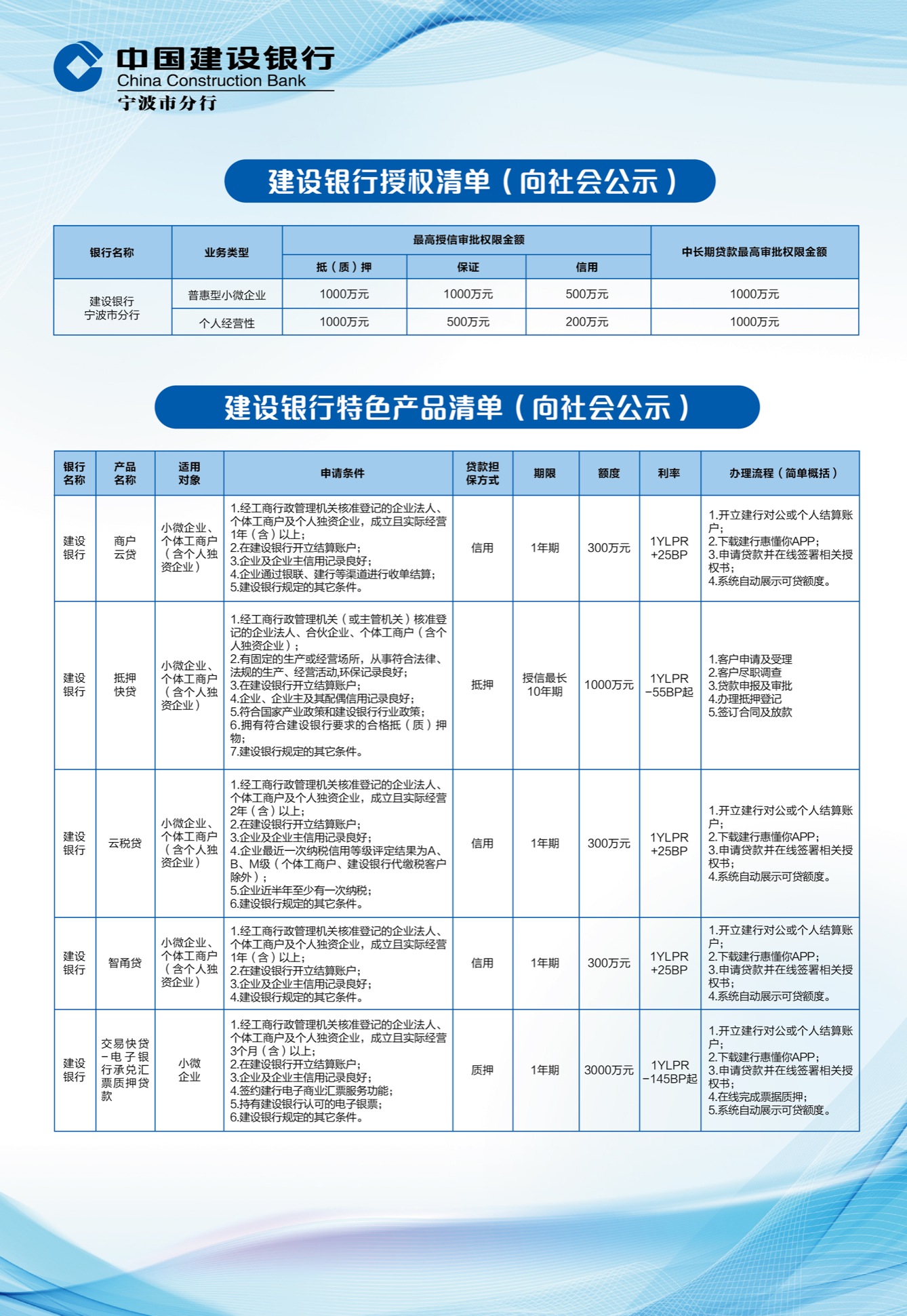 建设银行小微企业“四张清单”——授权清单和特色产品清单