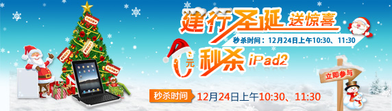 建行圣诞送惊喜,0元秒杀iPad2