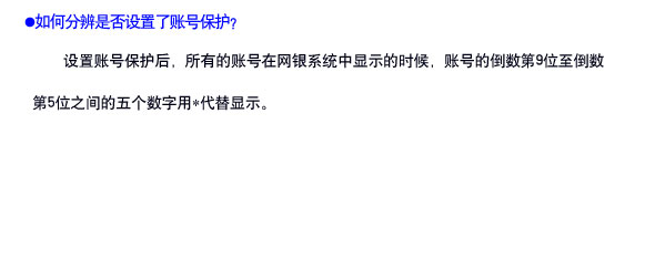 “看我的吧,登录建行网上银行后,点击安全中心,下面有一项叫‘账号保护’的功能,设置保护,成功!现在你再看看你的银行账号。”