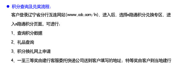 “你只要登录建行辽宁省分行主页就能看到积分换礼的活动页面,点击进去就能看到活动详情。”