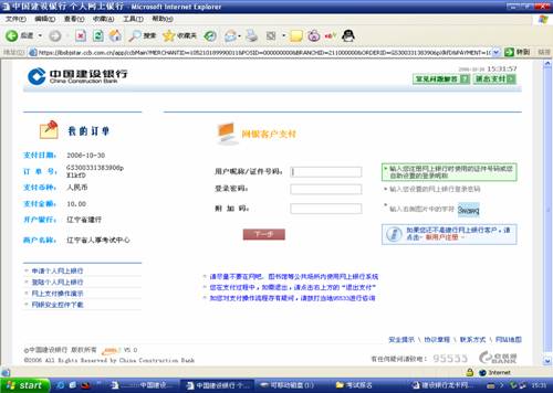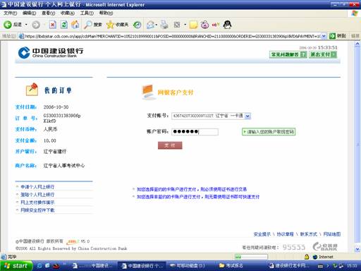 3、如在使用建行龙卡网上支付招考报名费时有任何疑问,请咨询建行24小时客户服务热线95533,省外客户(含大连)加拨024。