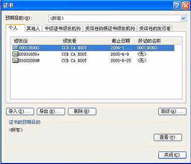 证书已成功导入,您可通过“Internet选项(控制面板)—内容—证书”选项查看证书是否已成功导入,成功导入后即可于本计算机使用网上银行服务。