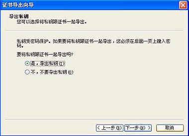 4、IE提示是否导出证书私钥,应选择“是,导出私钥”。