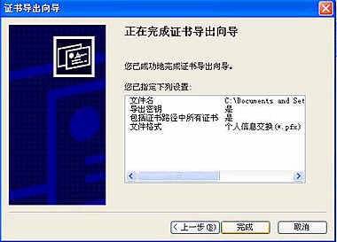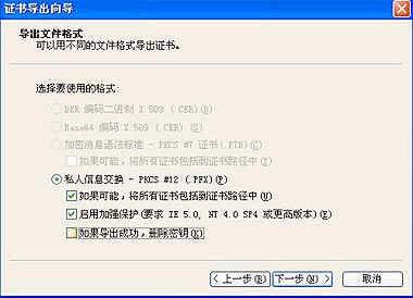注意:如选择不导出私钥,则导出的证书为无效证书,不能在他计算机上使用。