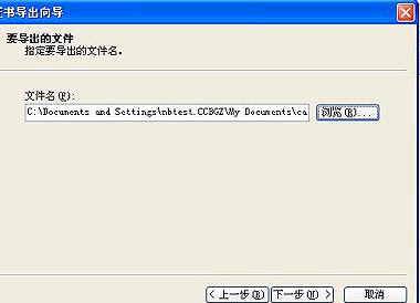 7、可通过“浏览”的方式选择导出证书存放目录,确认无误后点击“下一步”,建议证书应备份于3.5盘或其他存储设备。