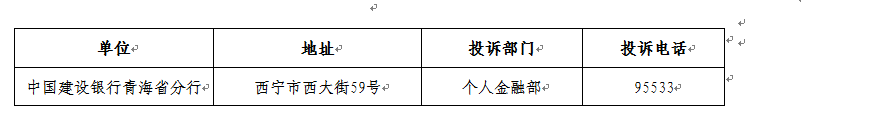 中国建设银行青海省分行金融消费者权益保护投诉信息表