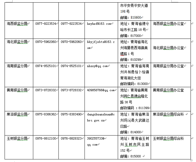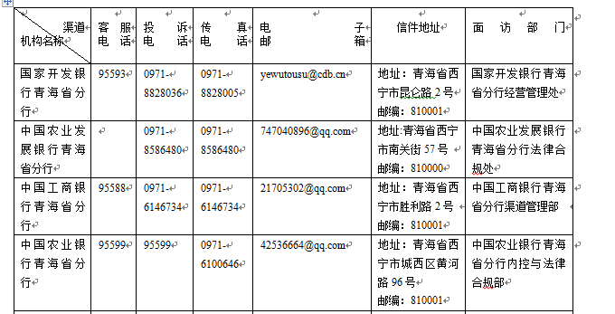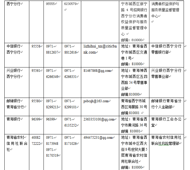(五)青海银监局投诉电话人工接听时间为:每周一至周五9:00-12:00 13:00-17:00,法定节假日及其他时间为电话录音方式接受投诉。来访时间同上。