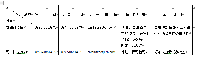 (一)青海银监局及辖内银监分局受理以下银行业消费者投诉事项: