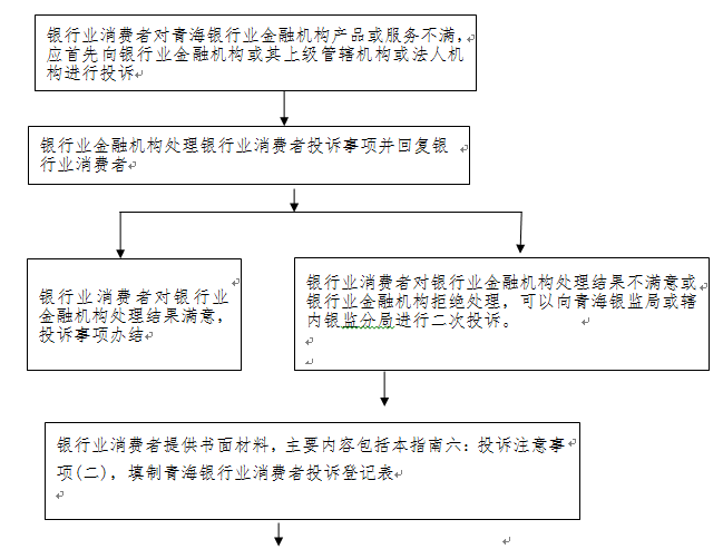 青海辖区的银行业金融机构是维护银行业消费者权益,对银行业消费者投诉做出快捷、规范、合理应对的第一责任主体,银行业消费者对银行业金融机构产品和服务不满,应首先通过电话、信函、电子邮件等方式向相关银行业金融机构或其上级管辖机构或法人机构进行投诉。如果认为投诉没有得到妥善处理或者银行业金融机构拒绝处理,可按行政区划向青海银监局或辖内的银监分局进行二次投诉。