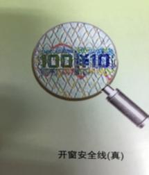 检查安全线 第五套人民币安全线是在纸张抄造过程中施放并与纸张结合为一体,安全线上的缩微文字清晰,采用全息图像技术,而且还有磁性。假币安全线主要有2种:1、印刷类安全线,分为外层印刷和内层印刷,缩微文字很模糊,无法辨识完整的文字信息,也无磁性;2、假币纸张中间夹一层带有文字的塑料线,既无全息图像,也无磁性,如有开窗部分,可观察到纸张表面被切开的裂口。