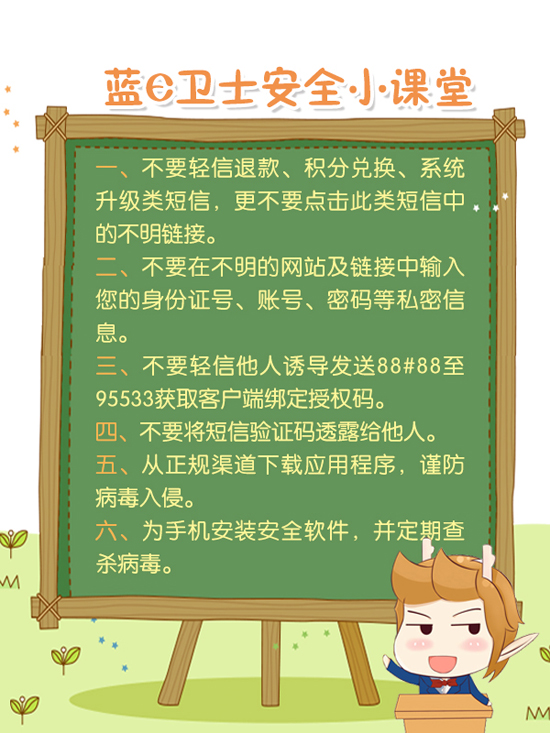 特别注意:骗取信息后不法分子会以常用借口诱骗您发送88#88至95533来获取授权码;