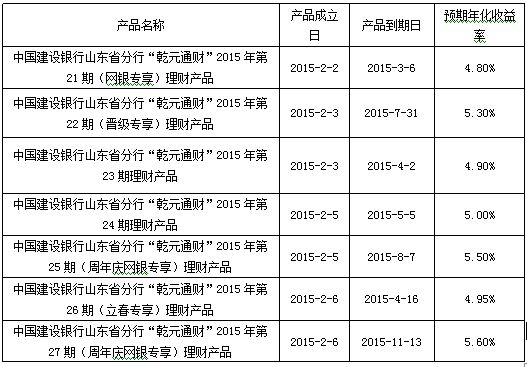 中国建设银行山东省分行“乾元通财”2015年第21、22、23、24、25、26、27期理财产品成立公告