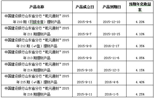 中国建设银行山东省分行“乾元通财”2015年7期理财产品成立公告