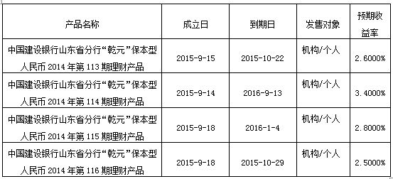 中国建设银行山东省分行“乾元”保本型理财产品成立公告