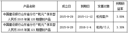 中国建设银行山东省分行“乾元”保本型理财产品成立公告