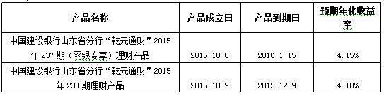 中国建设银行山东省分行“乾元通财”2015年2期理财产品成立公告