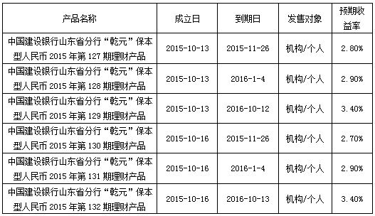 中国建设银行山东省分行“乾元”保本型理财产品成立公告