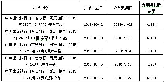 中国建设银行山东省分行“乾元通财”2015年5期理财产品成立公告