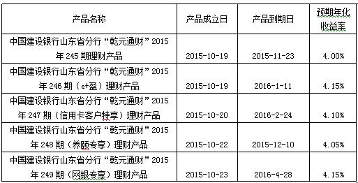 中国建设银行山东省分行“乾元通财”2015年5期理财产品成立公告