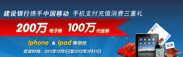 建设银行携手中国移动,手机支付充值消费三重礼!