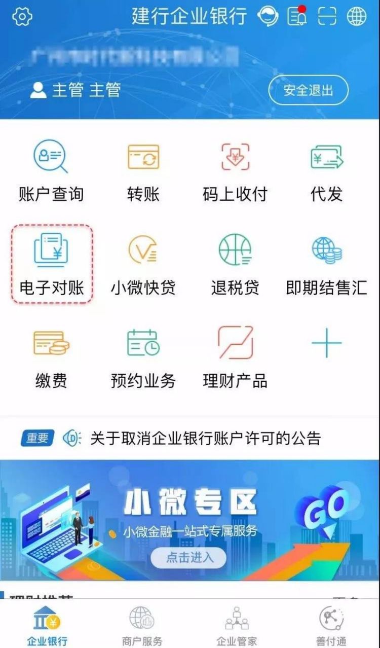 建行企业手机银行7×24小时为客户提供账户查询、转账、代发、信贷融资、理财产品、电子对账、即期结售汇、码上收付等掌上银行服务,让您足不出户、动动手指即可满足企业日常财务需求。