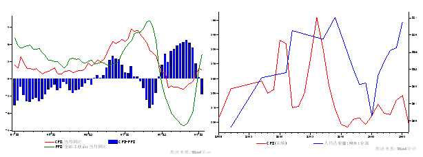 但要注意到,中期物价上涨、政策紧缩的压力依然存在,随着国内经济的迅速回升,货币流通速度将逐步回升,加上新增信贷大量投放,以及外资流入带来的外汇占款压力都在提醒我们不能忽视通胀。预计2季度末CPI有望进一步上升达到4%附近,上半年通胀压力较大,将进入明显的上行通道。 图4:CPI和PPI上升的态势很难改变 图5:粮食是否丰收并不决定国内通胀