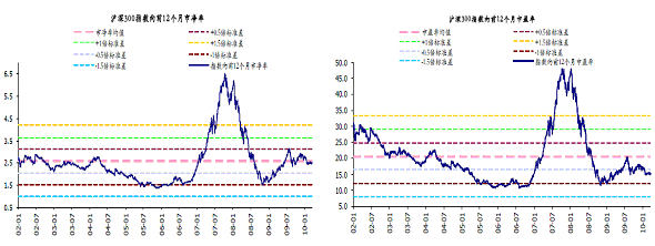 数据来源:WIND 2、债券市场 1月份,在股市回调、银行和保险机构配置压力等多种因素的影响下,信用债收益率明显下行,信用息差收窄;2月份CPI低于预期和央行提高准备金率,缓解了市场对于加息的担忧,在一级市场发行利率的带动,利率产品长端收益率下行,短端收益率上行,收益率曲线平坦化特征明显。1季度,中债财富指数上涨1.94%,收益率平均下行超过20bp。 3、股票市场 05年至今沪深300平均滚动PE水平均值在17倍左右,目前16.03倍PE,我们认为指数处于合理偏低的估值区间。 图6:A股已经比较便宜