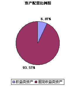 在大类资产配置中,权益类资产市值为16,215,370.00元,占净值比重为5.37%;固定收益类资产市值为285,960,384.00元,占净值比重94.63%。